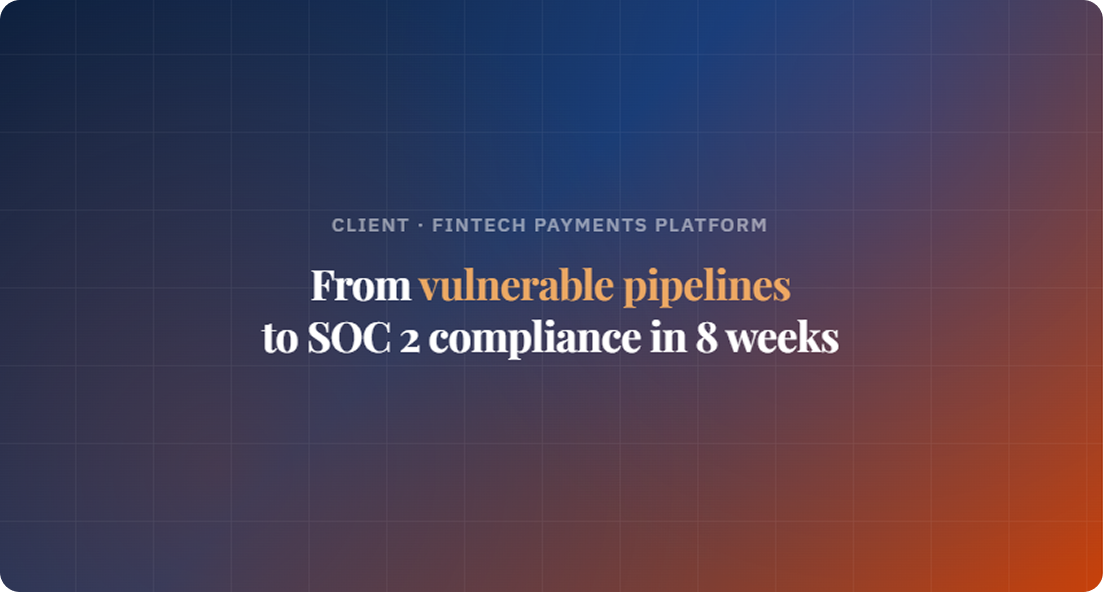 A fast-growing payments startup was shipping 10 times a day — with zero automated security gates. Engitrix redesigned their entire CI/CD pipeline, embedded shift-left security, and delivered SOC 2 compliance in 8 weeks without slowing down a single deployment.